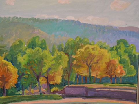 También pinta diversas hileras de chopos, uno de los árboles más abundantes en esta zona, que seducen al pintor por su esbeltez.